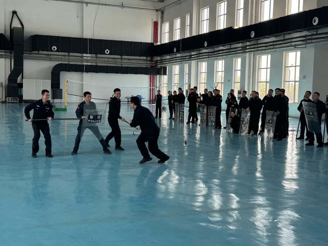人民警察训练中心特派五名优秀专业教官带来《铸牢中华民族共同体意识》、《公安机关保密条令》、《公安机关人民警察内务条令》三节理论课程,《徒手防卫控制与警械使用》、《“盾加x”组合攻防技术》两节实战训练课程。