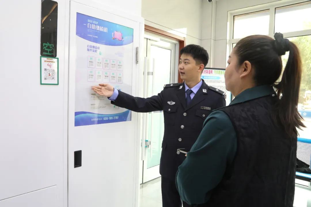 在巴彦淖尔市公安局临河分局先锋派出所内,车驾管服务区引入了集成化多功能“体检自助一体机”,融合视力、色度、听力检测等模块,通过5G专网与指定医院系统实时互联,群众可现场查体、当场制证、立等可取,切实将惠民利企措施落到实处。