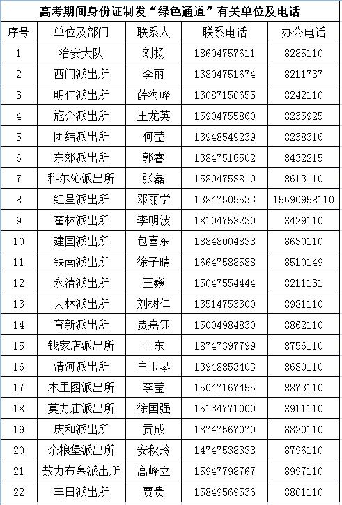 为做好2025年高考工作,满足考生因临考前居民身份证有效期满、证件损坏、丢失等急需办证、用证的迫切需求,从即日起至高考结束,通辽市公安局科尔沁分局将开展2025年高考学生加急办理居民身份证、临时身份证“绿色通道”助力高考工作。